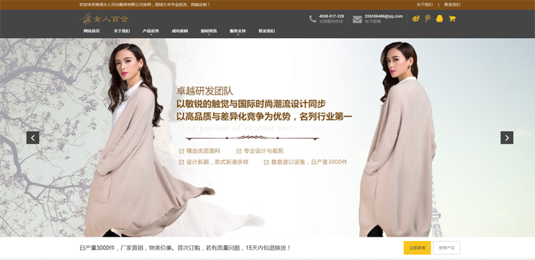 编号982-响应式貂绒大衣服装设计生产类网站(自适应手机端)
