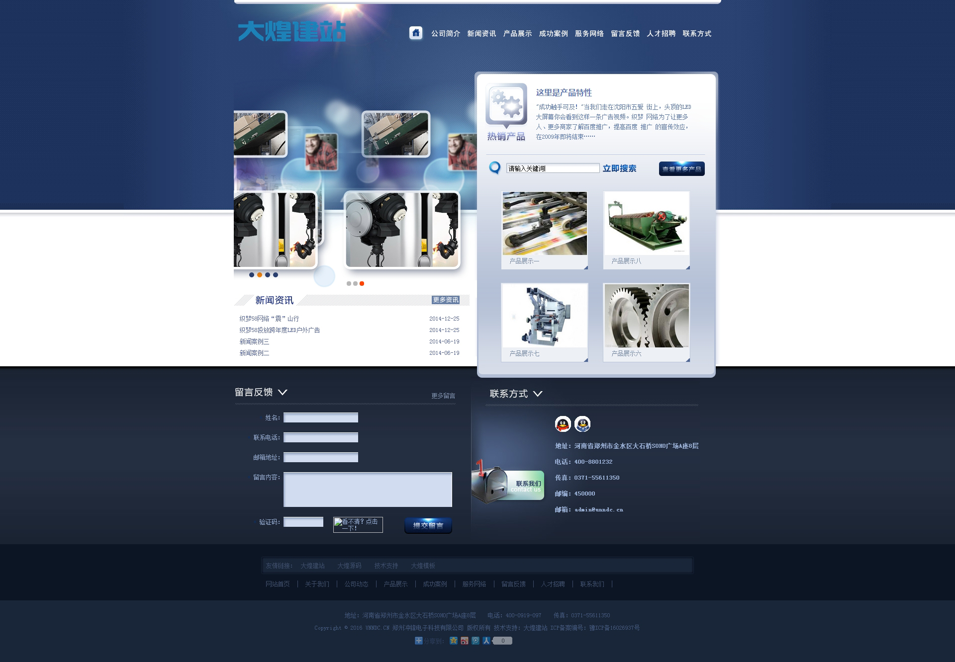 蓝色设备类企业网站