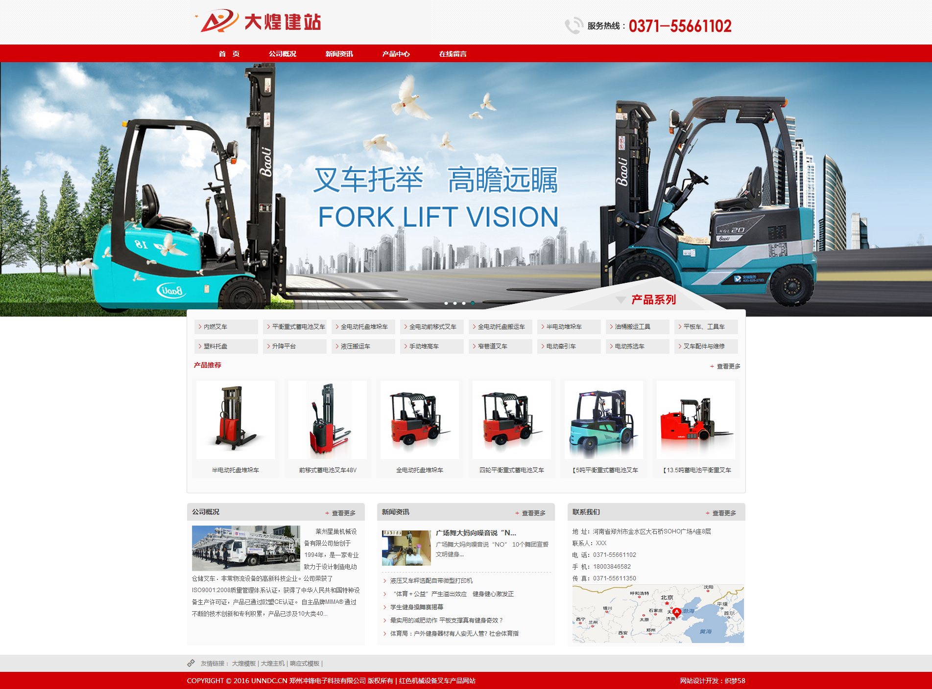 红色机械设备叉车产品网站