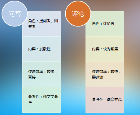 针对于上述表达的用户需求,其实评论功能也可以满足这些用户需求,那为什么还要上线问答功能呢?