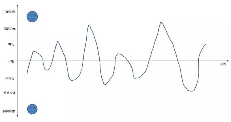 曲线是根据不同项目,不同群体的体验描绘出来。最顶端的波峰值得注意,如果是负向的峰比正向的峰还高,那这个体验最终是导向于负面印象的。