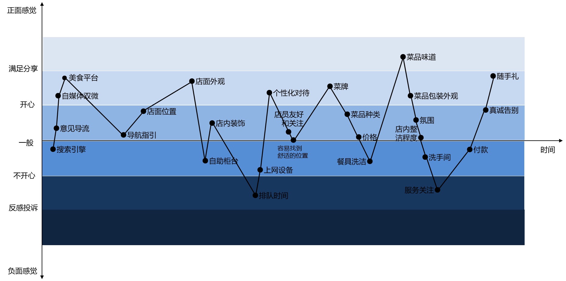 以餐饮行业为例,根据我最近去的一家餐厅,我画了一个体验图。