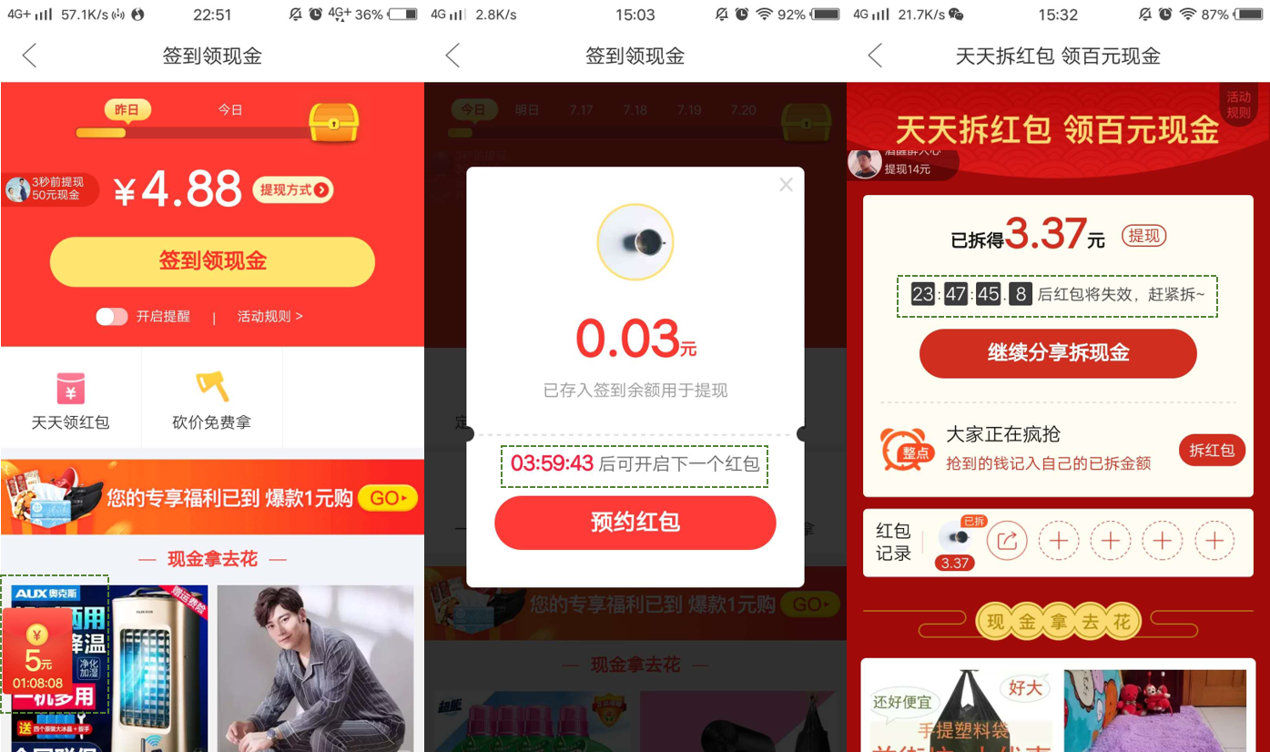 签到后可以直接抢红包,一个不过瘾还可以预约下一个红包。