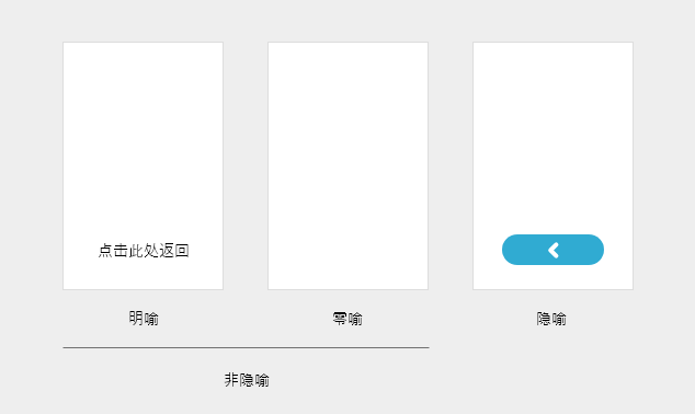 黑色方框表示界面边界,明喻即用清晰的文字描述点击后会触发系统的“返回”功能;