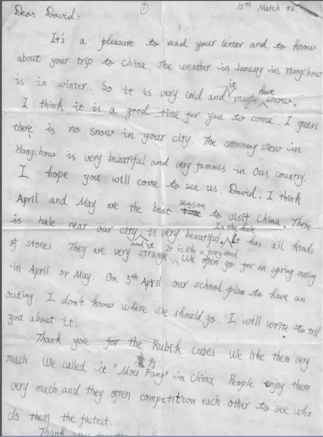 (马云小时候写给戴维·莫利的一封信)