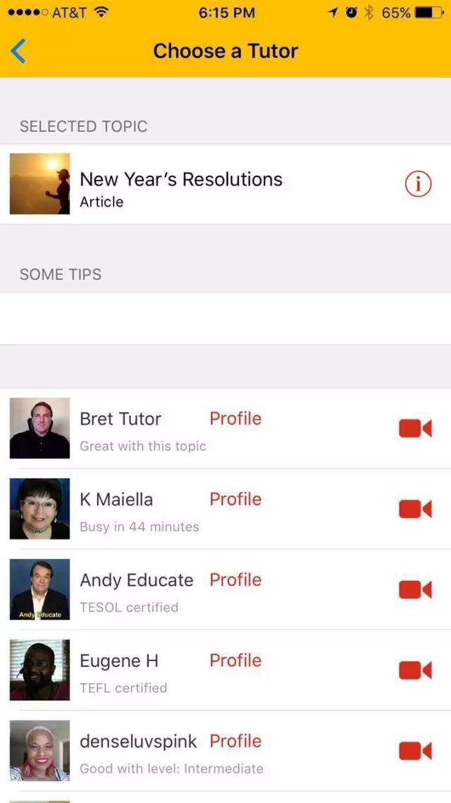 当然,Cambly也支持通过下方的“私人教师”按钮来挑选自己喜欢的老师来练习英语,而不是使用系统匹配的老师。你也可以通过下方的“话题”选项来选择感兴趣的领域的老师;