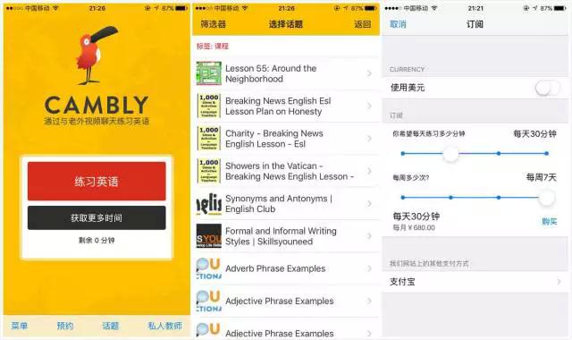 Cambly有点像口语培训界的Uber,匹配口语学习者和口语老师。
