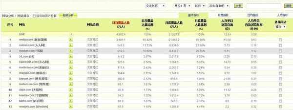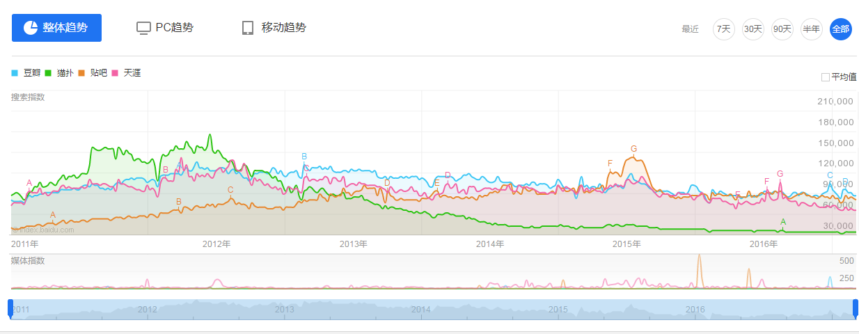 百度指数:豆瓣、猫扑、贴吧、天涯
