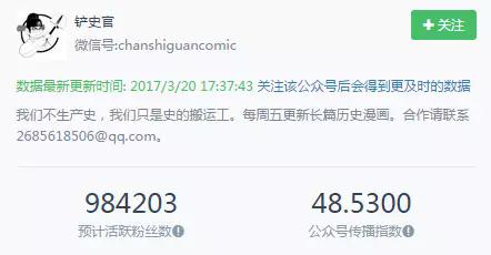 铲史官是定位历史领域的公众号,他们一周推送一次长篇漫画图文,文章的打开率接近50%,阅读量超过10W+的更不在少数,橙子认为他们能够收获高粘性粉丝是因为以下几点。