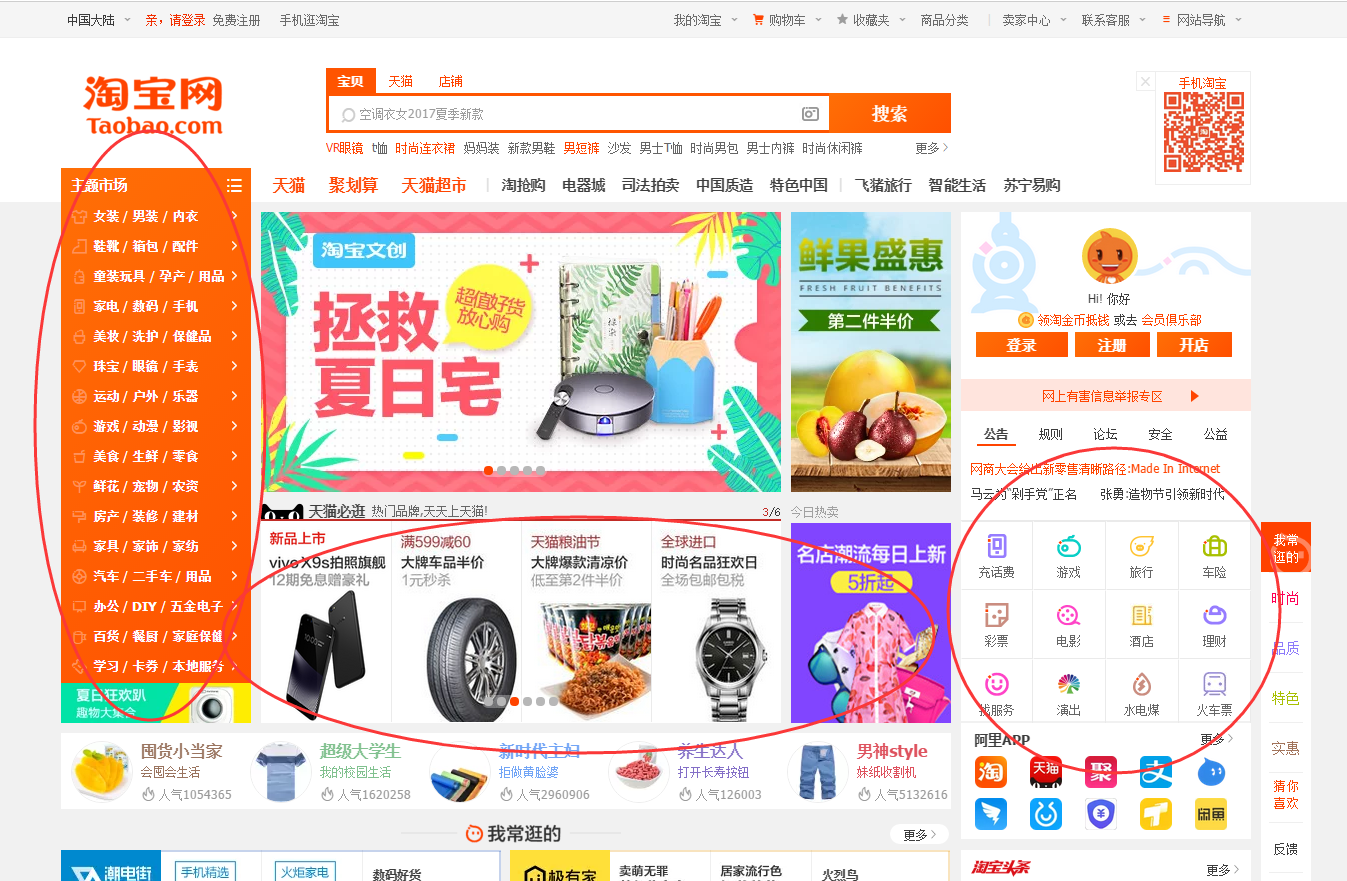 如今我们逛一些相当成熟的购物网站(比如淘宝)的时候,甚至比在百货商厦中的感觉更清晰。我能更便捷地找到自己想要的东西。(商品分类,新品促销,其他功能。。。)