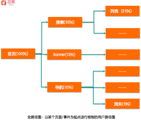 注:使用用户路径图,能够帮助我们统筹全局,对整个网站/APP的用户流动洞若观火。