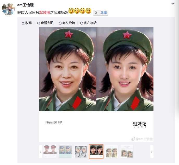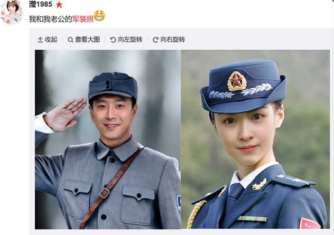 军装照火爆网络,网友们也是纷纷晒出自己的“军装”照,首先是夫妻档上阵,“军中模范夫妻”。